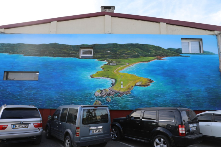 Yapısal olarak estetik görünmeyen geniş bir boş cephe, sanayi yönetiminin talebi üzerine Ordu’nun önemli doğal miraslarından biri olan Yason Burnu temasıyla yeniden hayat buldu.